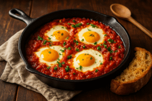 La shakshuka vegetariana es perfecta para un desayuno energético o brunch con sabores del Medio Oriente. Shakshuka Vegetariana con Pimientos y Tomate Un clásico del